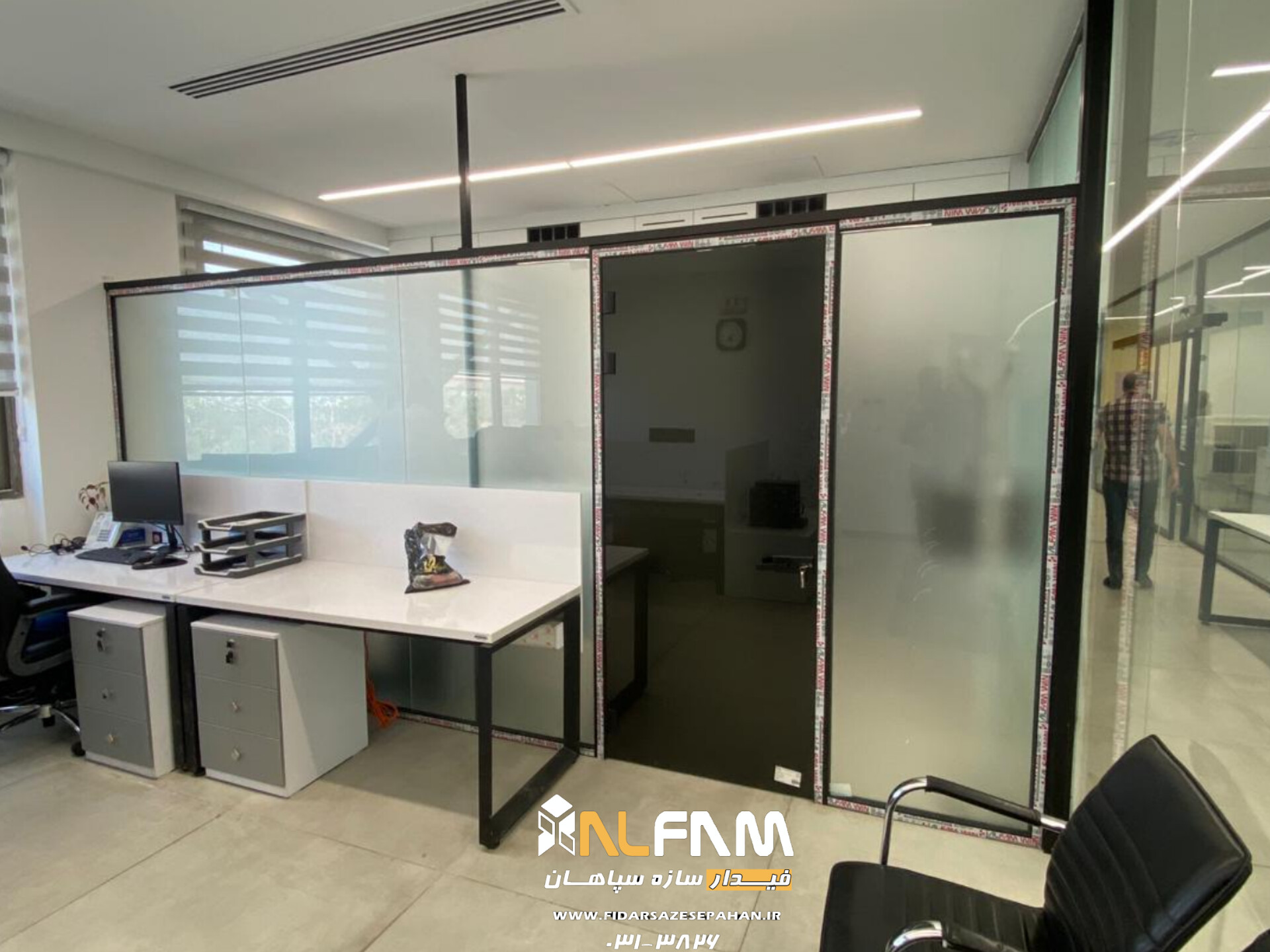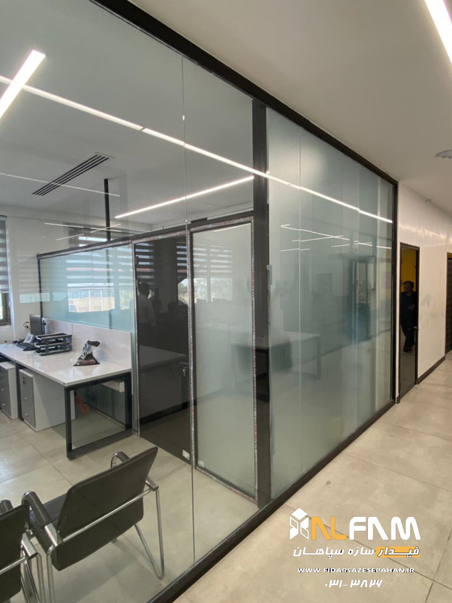 پارتیشن دوجداره : عایق صدا و حرارت است و اغلب برای فضاهای مدیریتی استفاده میشود.